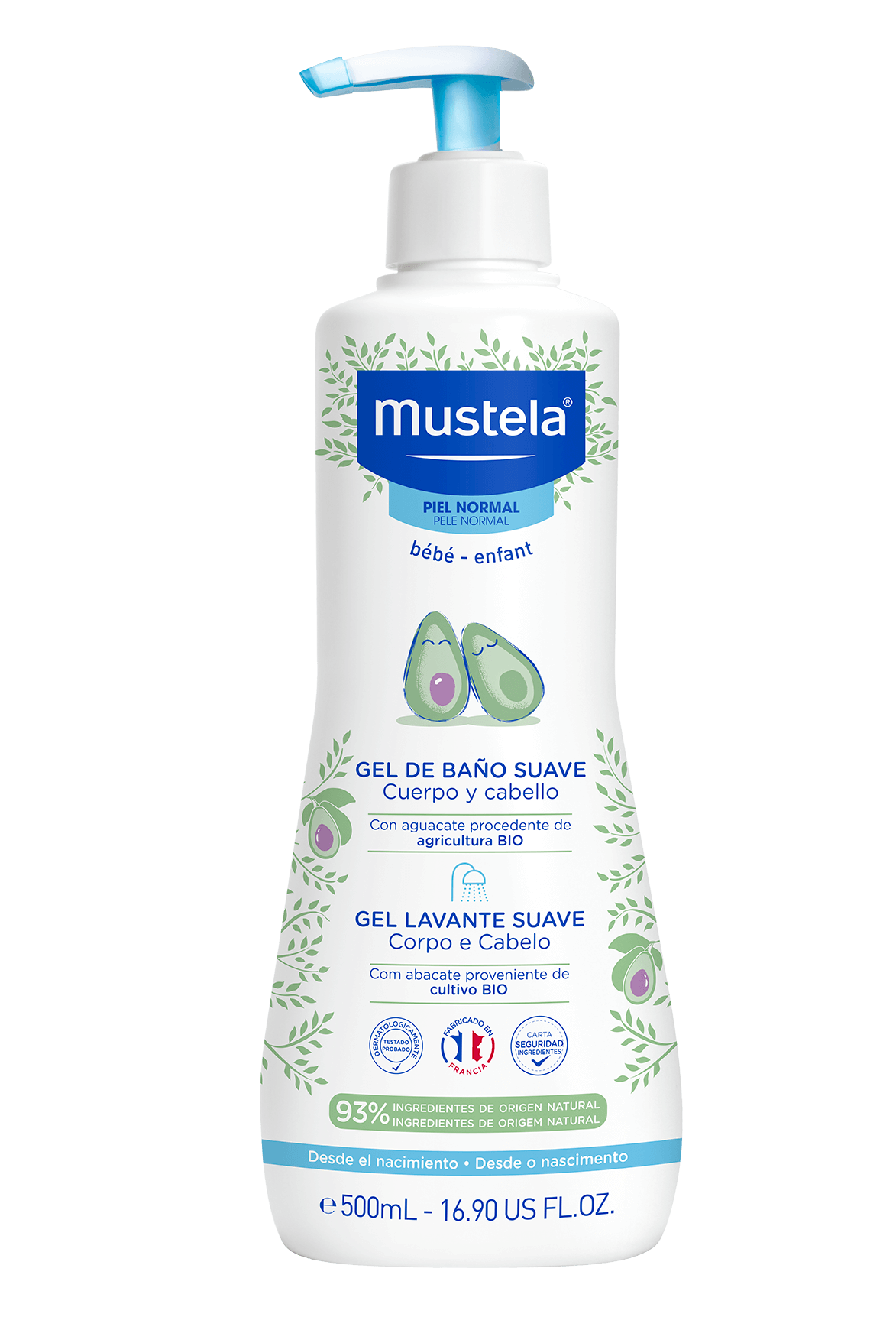 Lava a pele e o cabelo com suavidade: 100% de satisfação. Eficácia suavizante e calmante: 98% de satisfação. Estudo clínico realizado sob controlo dermatológico e pediátrico em 59 bebés, incluindo bebés com menos de 3 meses, durante 3 semanas (auto-avaliação).